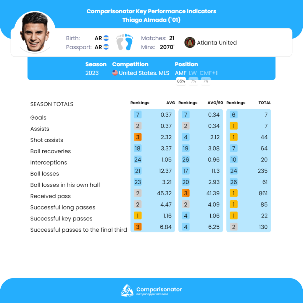Our team of recruitment analysts dived into United States MLS current season, and listed top 5 leaders in each parameter category: