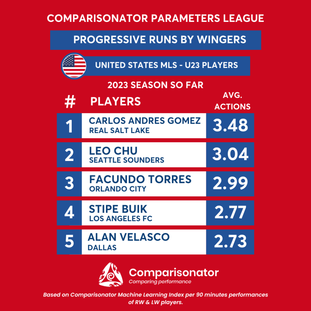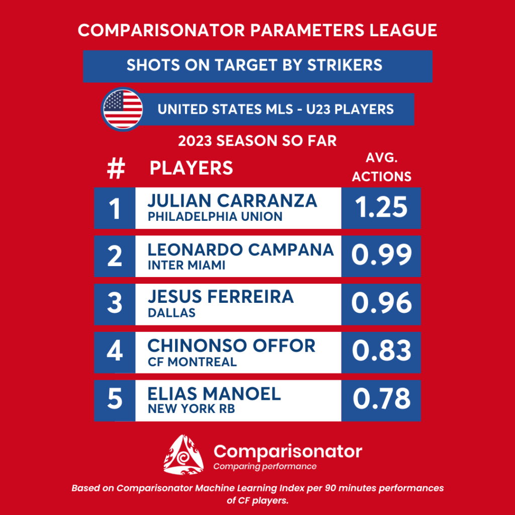 Comparisonator team analyzed the best U23 players in selected parameters in the United States MLS in 2023 season so far.