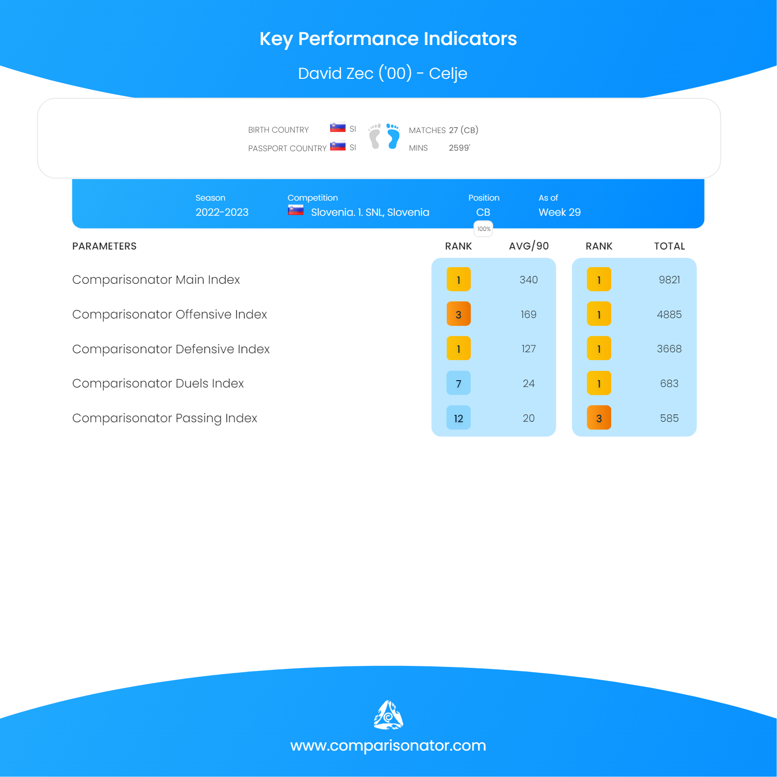 Brought to you by Football Forum Hungary 30 May 2023 Groupama Arena Budapest, Comparisonator indicated 4 Best U23 Players Albania, Slovenia, North Macedonia 2022/23 season. Player’s rankings are among his own position players.