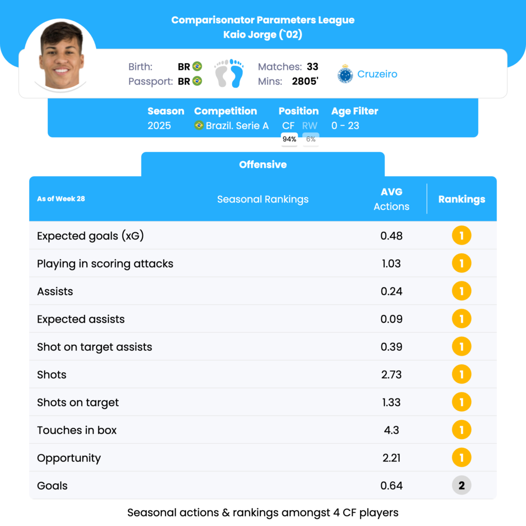 Kaio Jorge‘s CompaGPT Parameters League Offensive report: