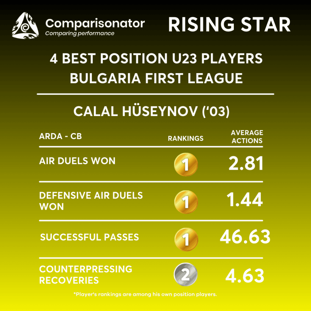 As the Bulgaria First League 2025/26 season unfolds, a new wave of young talents is making a name for themselves across the league. From commanding defenders to dynamic forwards, these players are proving their worth with standout performances and impressive data-driven contributions. Using advanced performance metrics, we break down their impact, strengths, and potential, giving a data-driven perspective on why these rising stars are ones to watch. Let’s dive into the numbers and uncover what makes them stand out in Bulgaria First League.