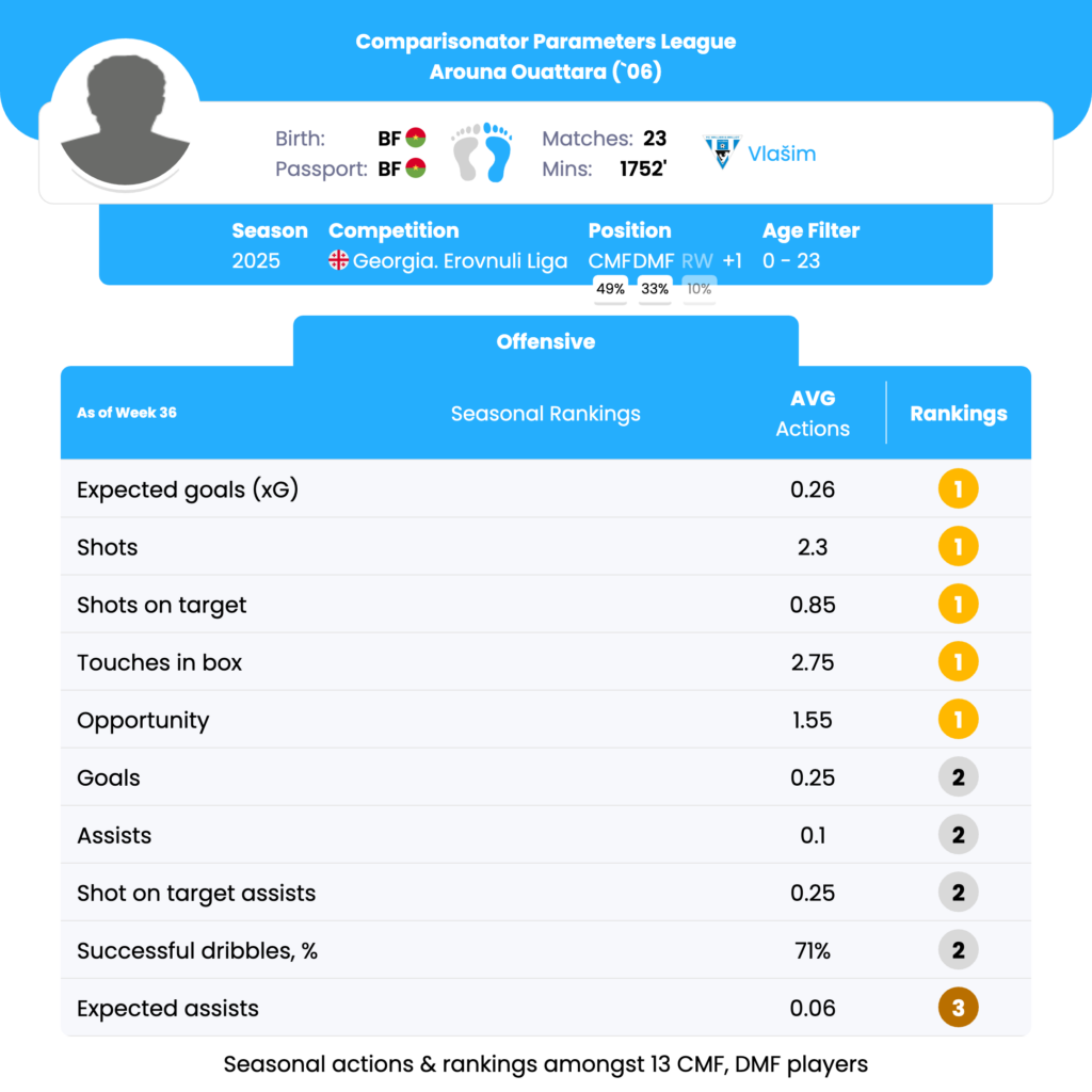 Arouna Ouattara‘s CompaAI Parameters League Offensive report: