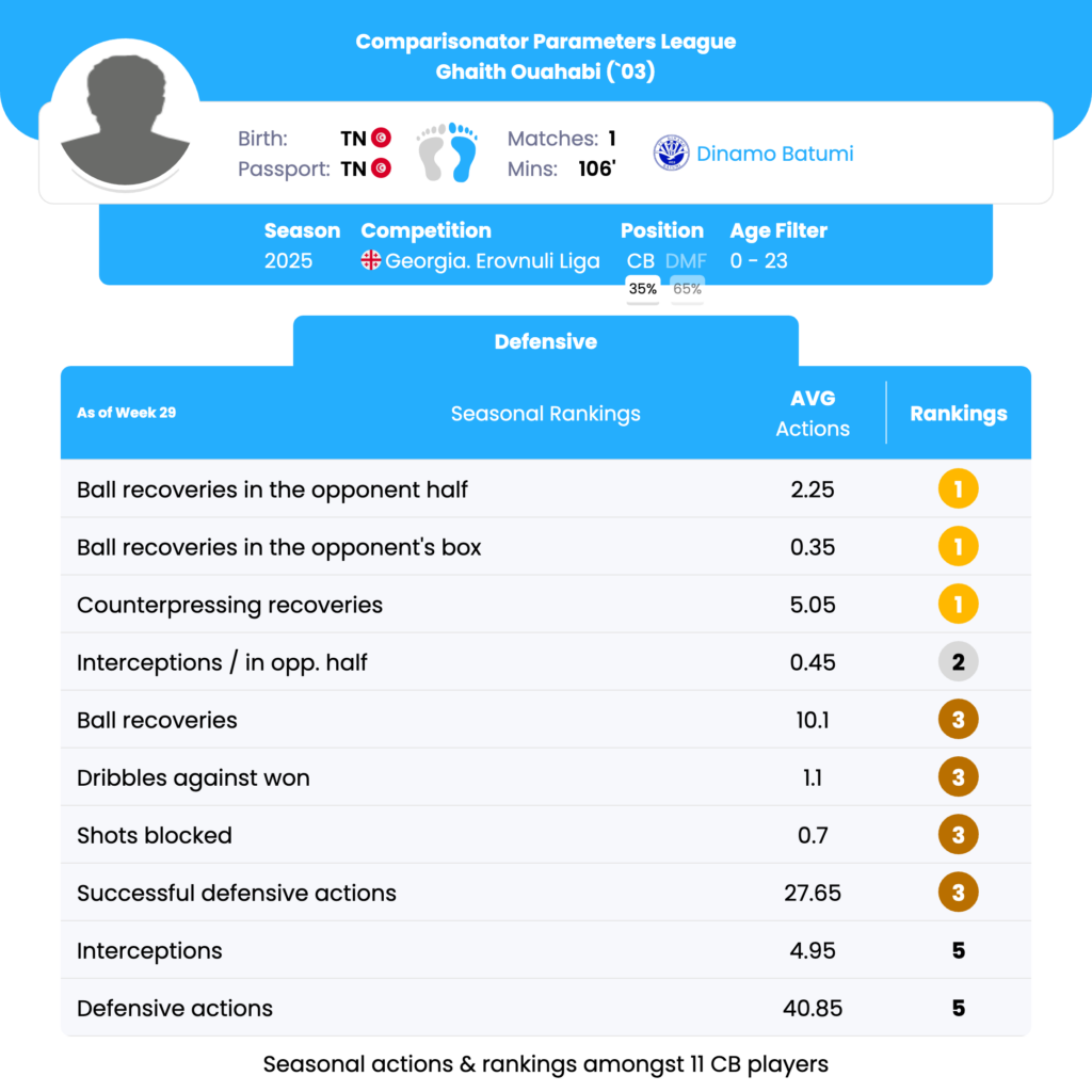 Ghaith Ouahabi‘s CompaAI Parameters League Defensive report:
