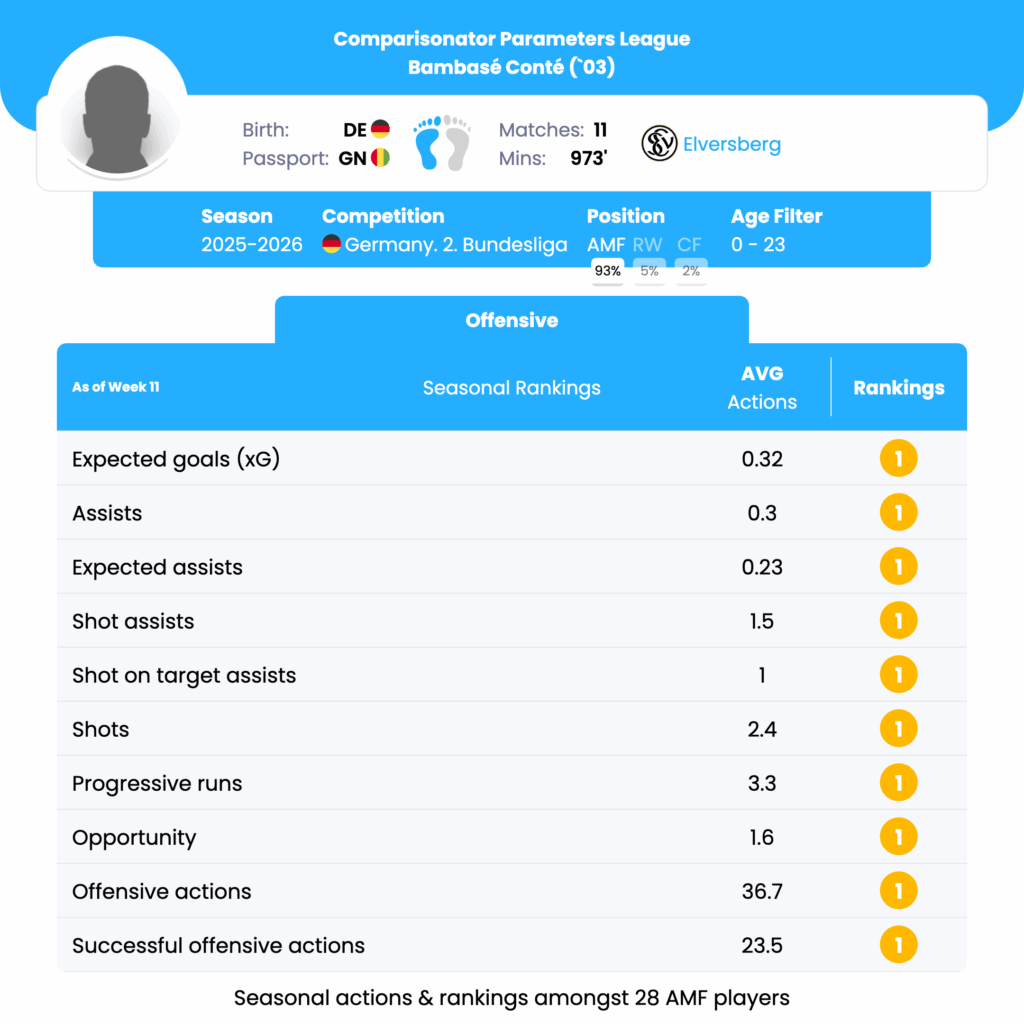Bambasé Conté‘s CompaGPT Parameters League Offensive report: