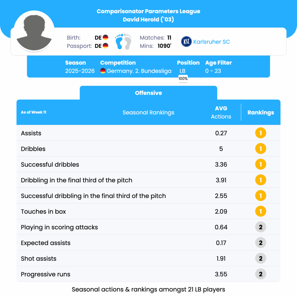 As the Germany 2. Bundesliga 2025/26 season unfolds, a new wave of young talents is making a name for themselves across the league. From commanding defenders to dynamic forwards, these players are proving their worth with standout performances and impressive data-driven contributions. Using advanced performance metrics, we break down their impact, strengths, and potential, giving a data-driven perspective on why these rising stars are ones to watch. Let’s dive into the numbers and uncover what makes them stand out in Germany 2. Bundesliga.