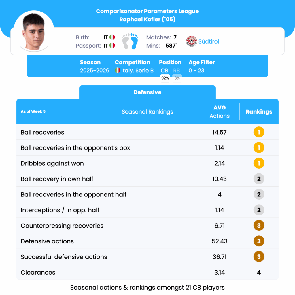 Raphael Kofler‘s CompaGPT Parameters League Defensive report: