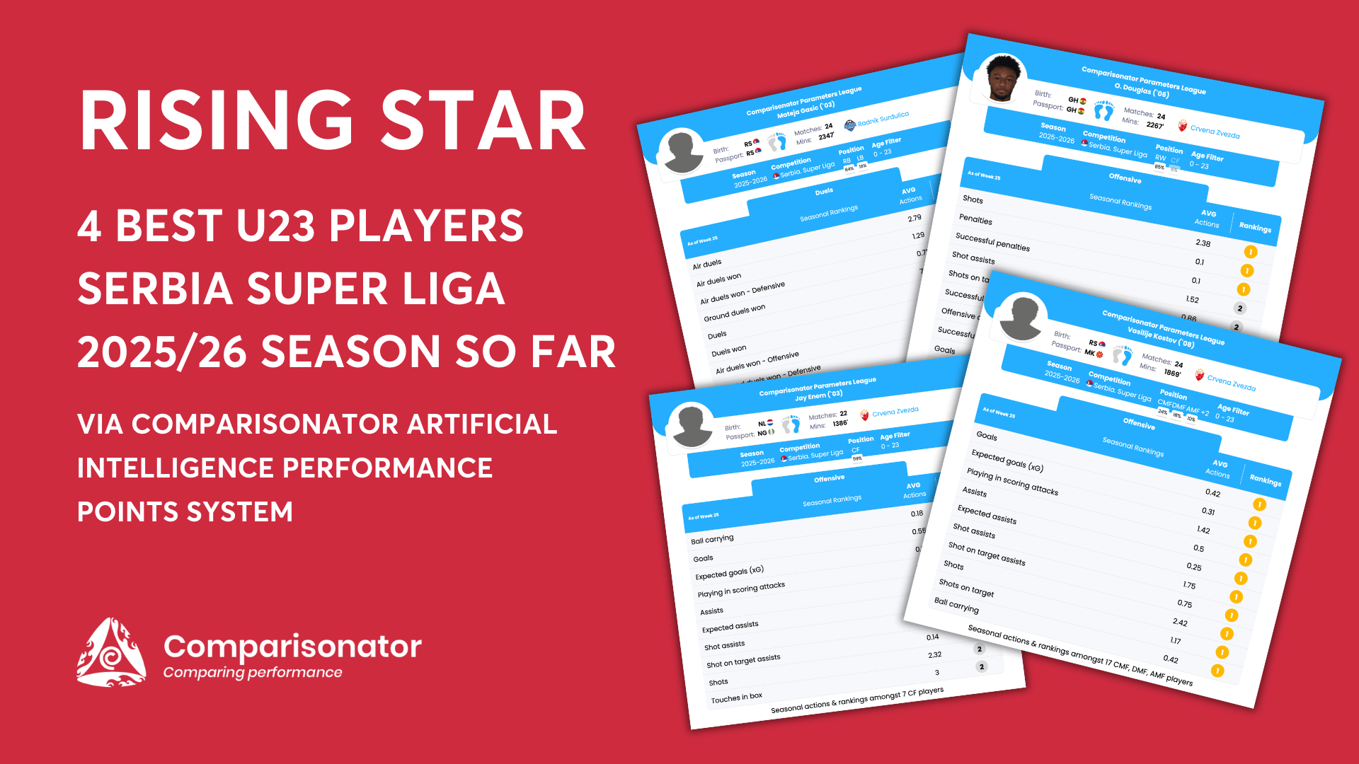 As the Serbia Super Liga 2025/26 season unfolds, a new wave of young talents is making a name for themselves across the league. From commanding defenders to dynamic forwards, these players are proving their worth with standout performances and impressive data-driven contributions. Using advanced performance metrics, we break down their impact, strengths, and potential, giving a data-driven perspective on why these rising stars are ones to watch. Let’s dive into the numbers and uncover what makes them stand out in Serbia Super Liga.
