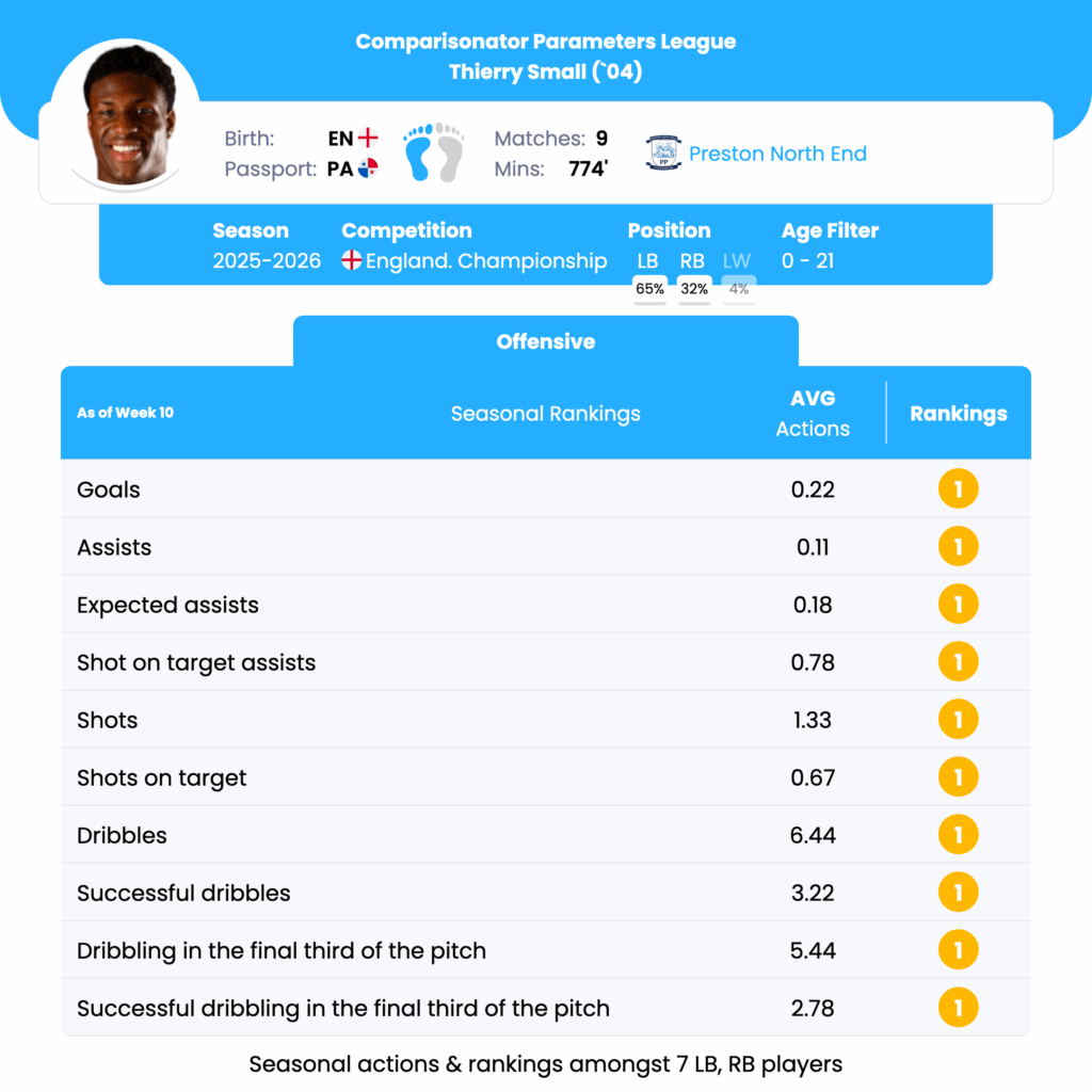 Thierry Small‘s CompaGPT Parameters League Offensive report: