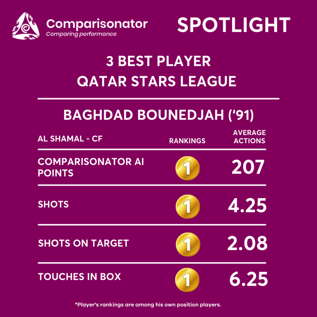 Baghdad Bounedjah (‘91) (CF) – Al Shamal