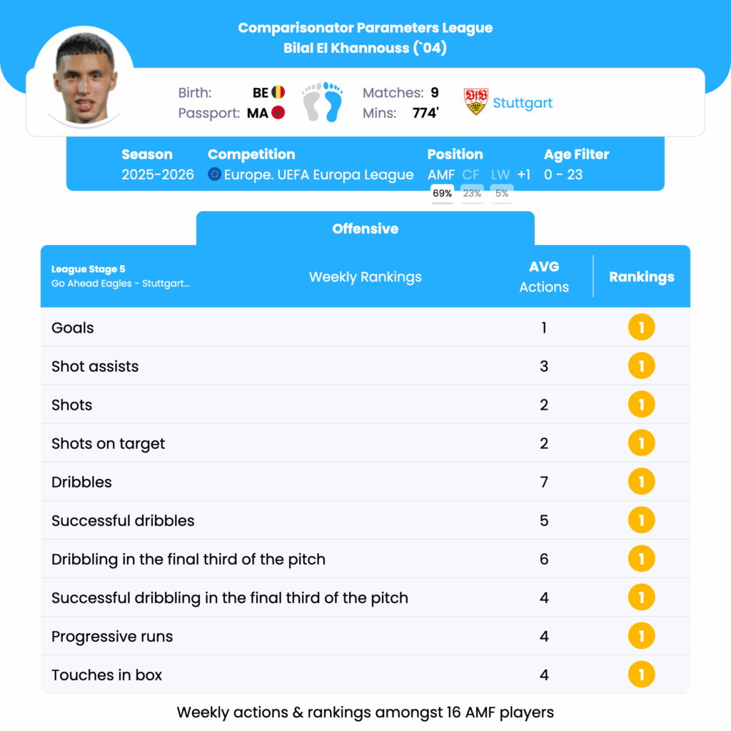 Bilal El Khannouss (‘04) (AMF) – Stuttgart