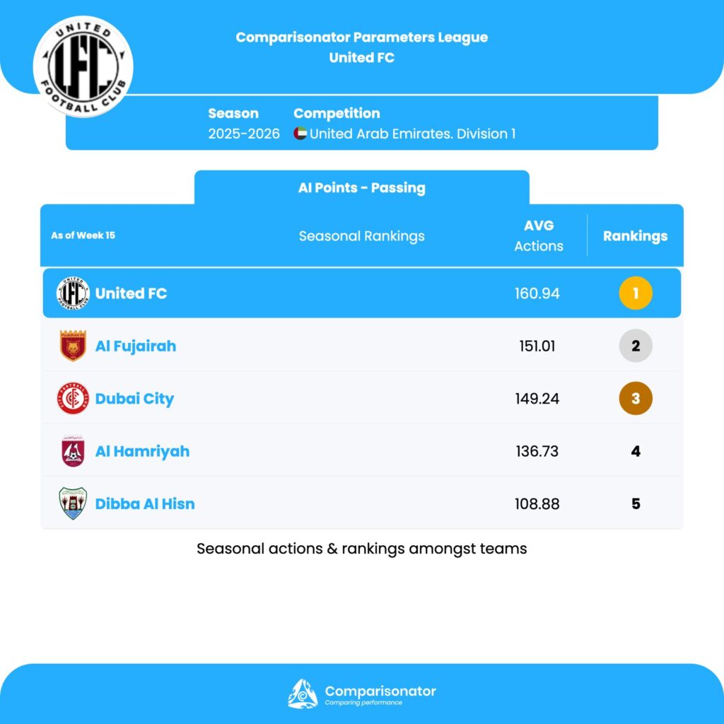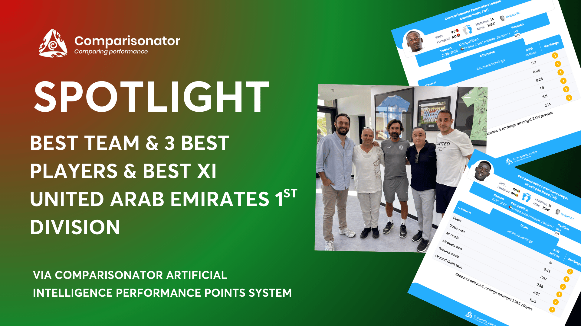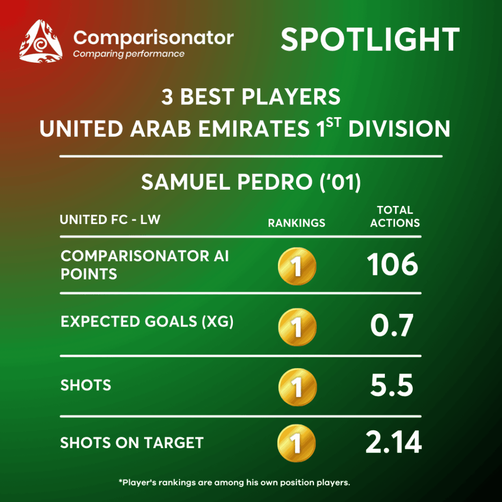Dubai FC, led by Andrea Pirlo, has won all of its last four matches. They are at the top of the performance table according to the AI season standings. The player who contributed most to this success is Samuel Pedro.