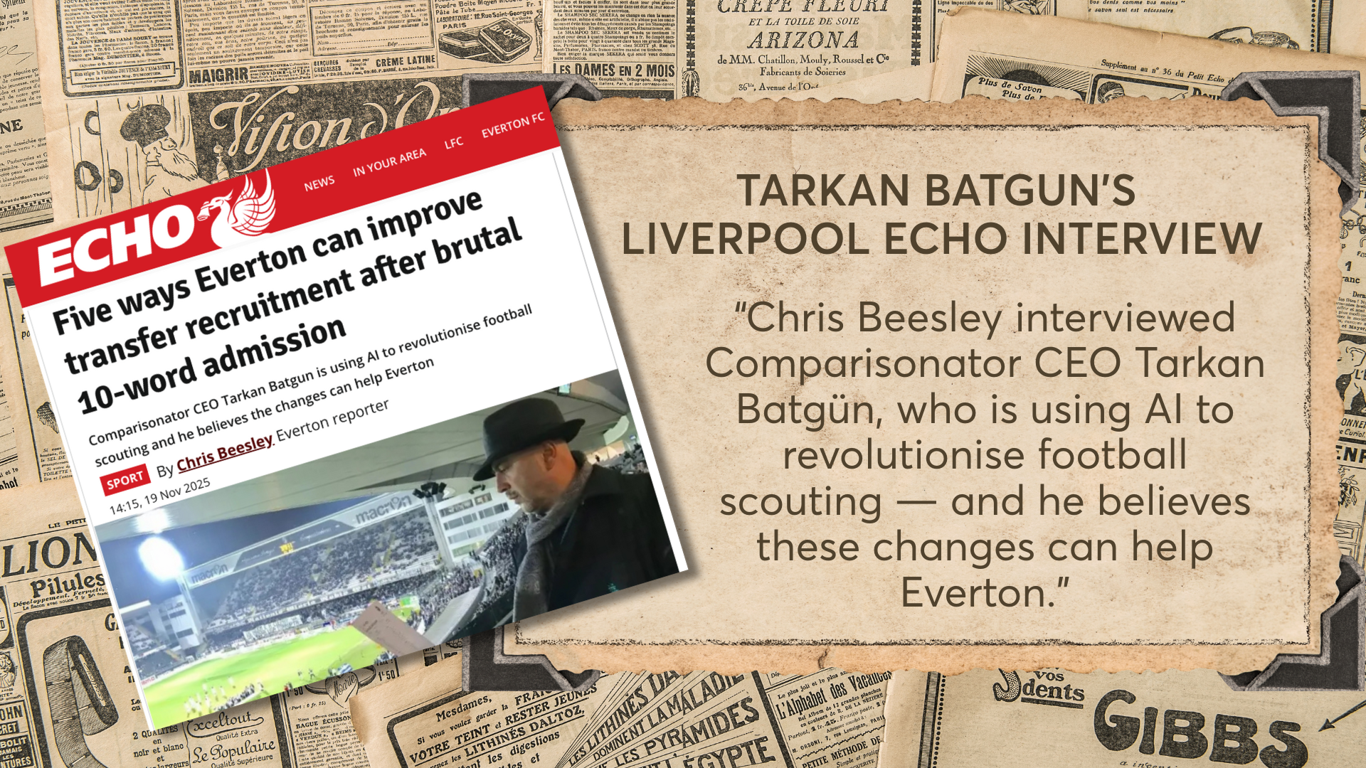 Liverpool Echo’s Everton reporter Chris Beesley interviewed Comparisonator CEO Tarkan Batgün, who shared his ideas on using AI to revolutionise football scouting — and why he believes these changes can help Everton.