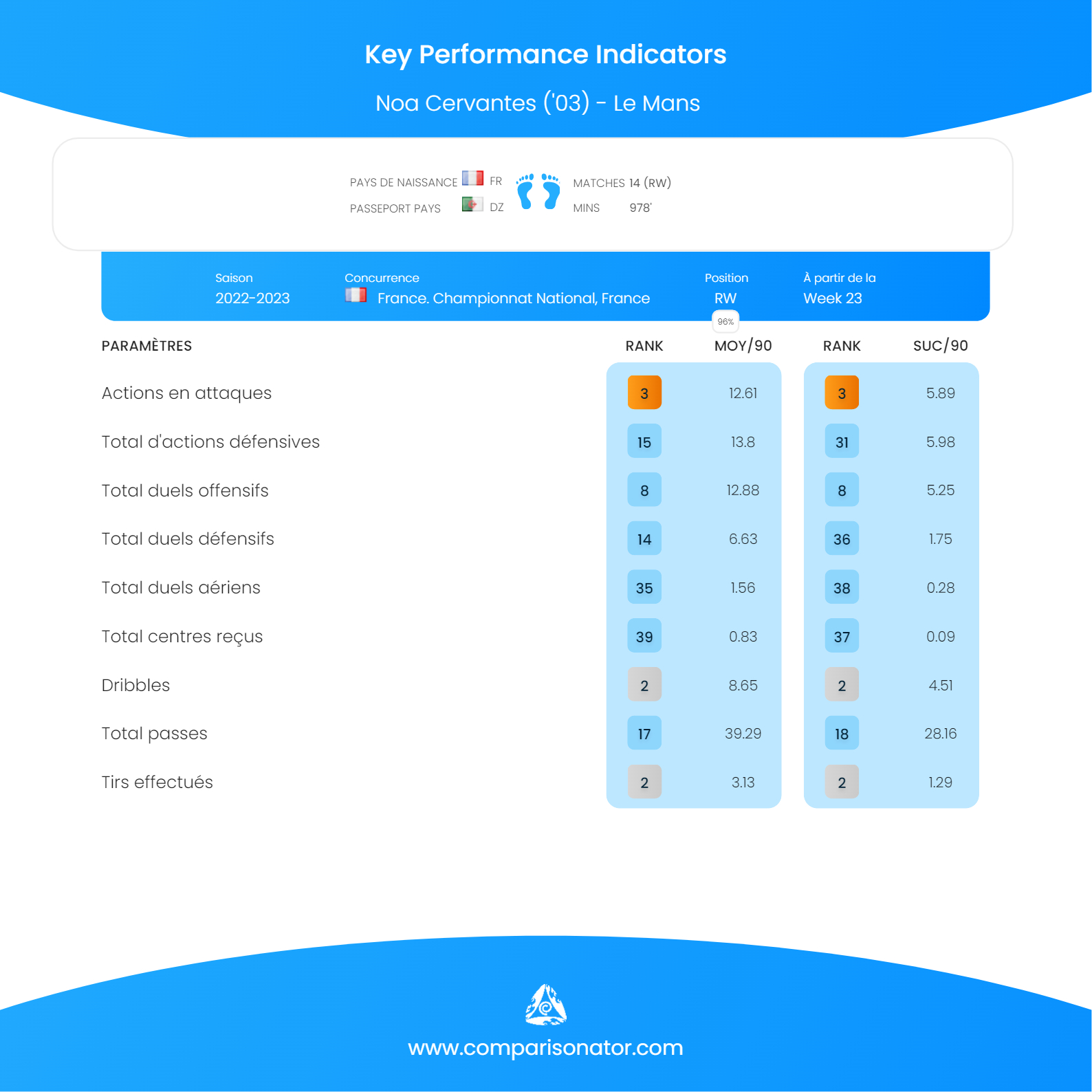 La función de inteligencia artificial “INDEX” de Comparisonator ha seleccionado a 3 jugadores destacados de la temporada 2022-23 del Campeonato Nacional de Francia, mostrando los parámetros en los que dominan gracias a la función de indicadores de rendimiento.