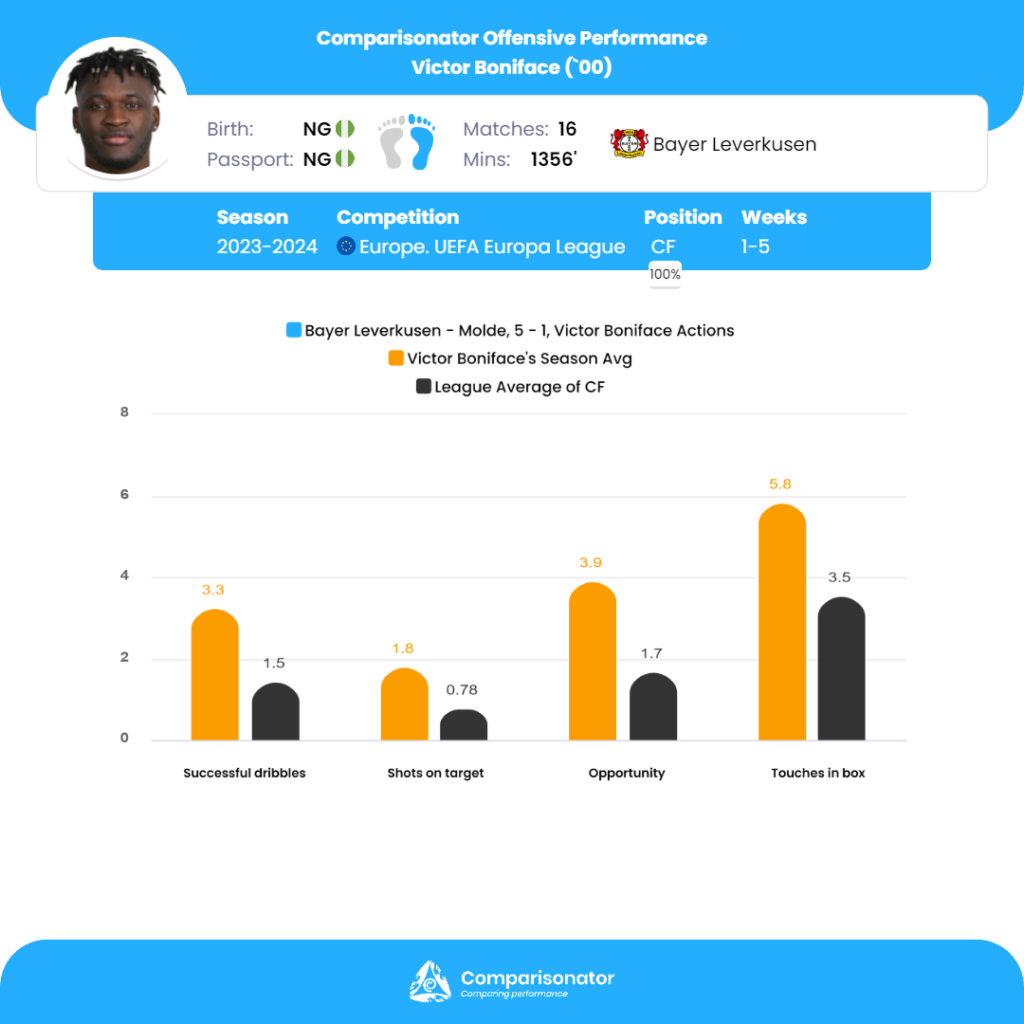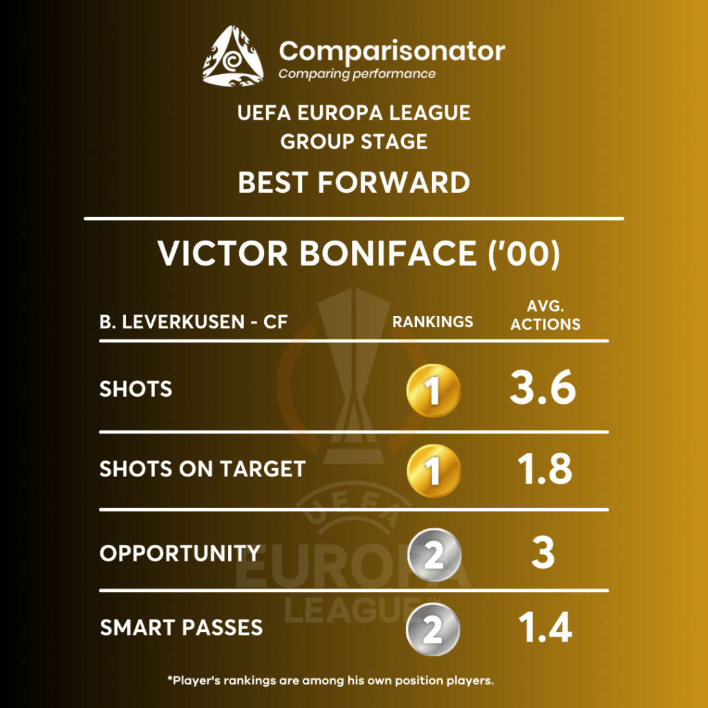 La phase de groupes de l’UEFA Europa League pour la saison 2023/24 a mis en lumière les performances exceptionnelles de trois joueurs qui se sont démarqués, identifiés par la plateforme innovante Comparisonator. Victor Boniface, l’avant-centre prolifique du Bayer Leverkusen, Florian Wirtz, le milieu offensif créatif du même club, et Berat Djimsiti, l’imposant défenseur central de l’Atalanta, ont tous laissé une marque indélébile grâce à leurs contributions exceptionnelles à leurs postes respectifs.