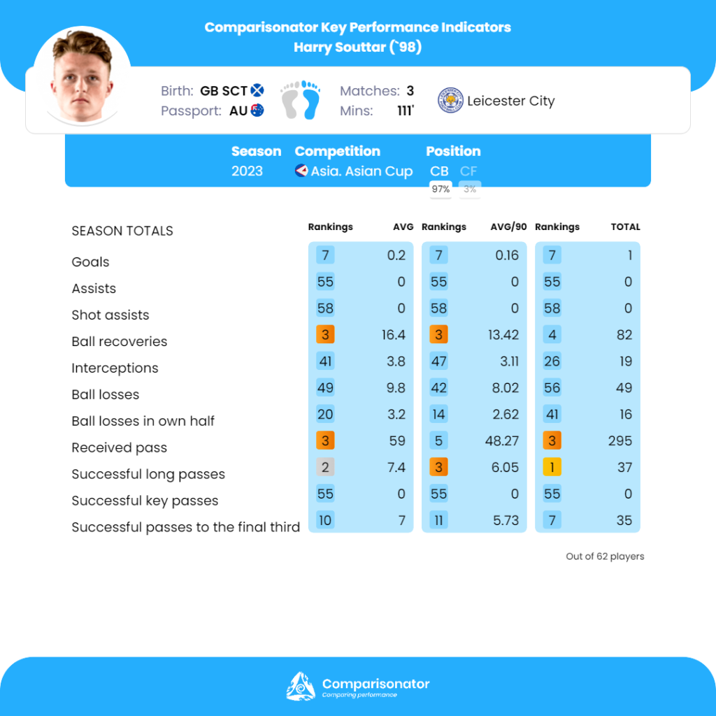 2023 Asya Kupası, gelişmiş Comparisonator platformu tarafından belirlenen üç öne çıkan oyuncunun dikkat çekici performanslarına sahne oldu. Katar’dan üretken bir santrafor olan Akram Afif, Güney Kore’yi hücuma yönelik orta saha oyuncusu olarak temsil eden Heung-Min Son ve Avustralya’dan komuta eden bir merkez bek olan Harry Souttar, sadece bireysel başarılarını göstermekle kalmadılar, aynı zamanda takımlarının turnuvadaki performanslarını da önemli ölçüde etkilediler.