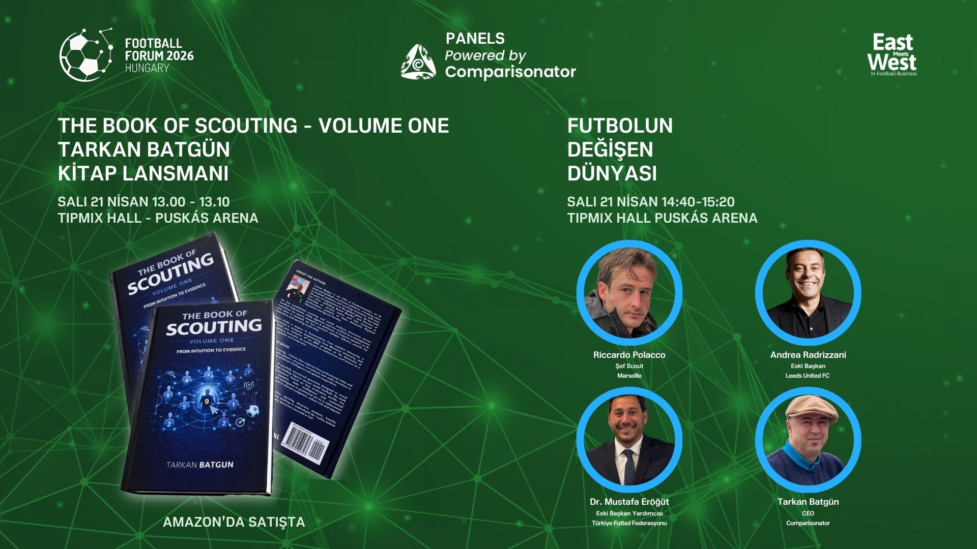 CEO’muz Tarkan Batgün’ün kitabı The Book of Scouting – Volume One artık Amazon’da yayında. Kitabın Avrupa Lansmanı Macaristan Futbol Forumu’nda etkinliğin bir parçası olarak yer alacak.